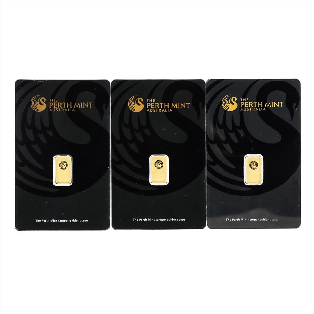 One Lot of (3) Perth Mint Australia 1 gram Gold Bars.