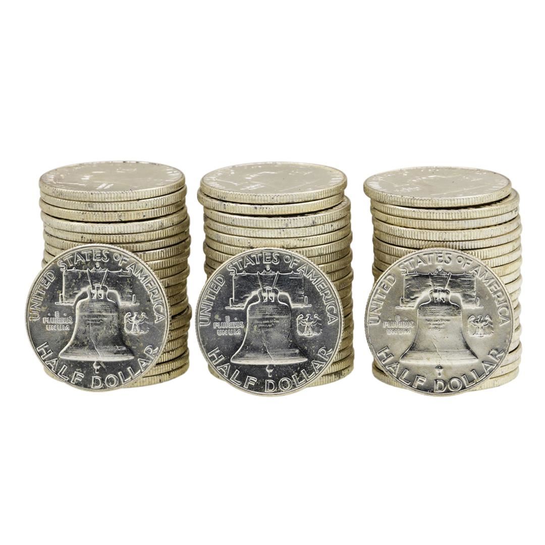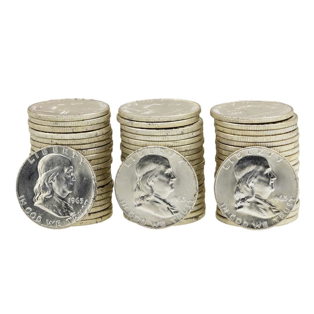 Lot of (3) Rolls of (20) 1963-D Brilliant Uncirculated Franklin Half Dollars