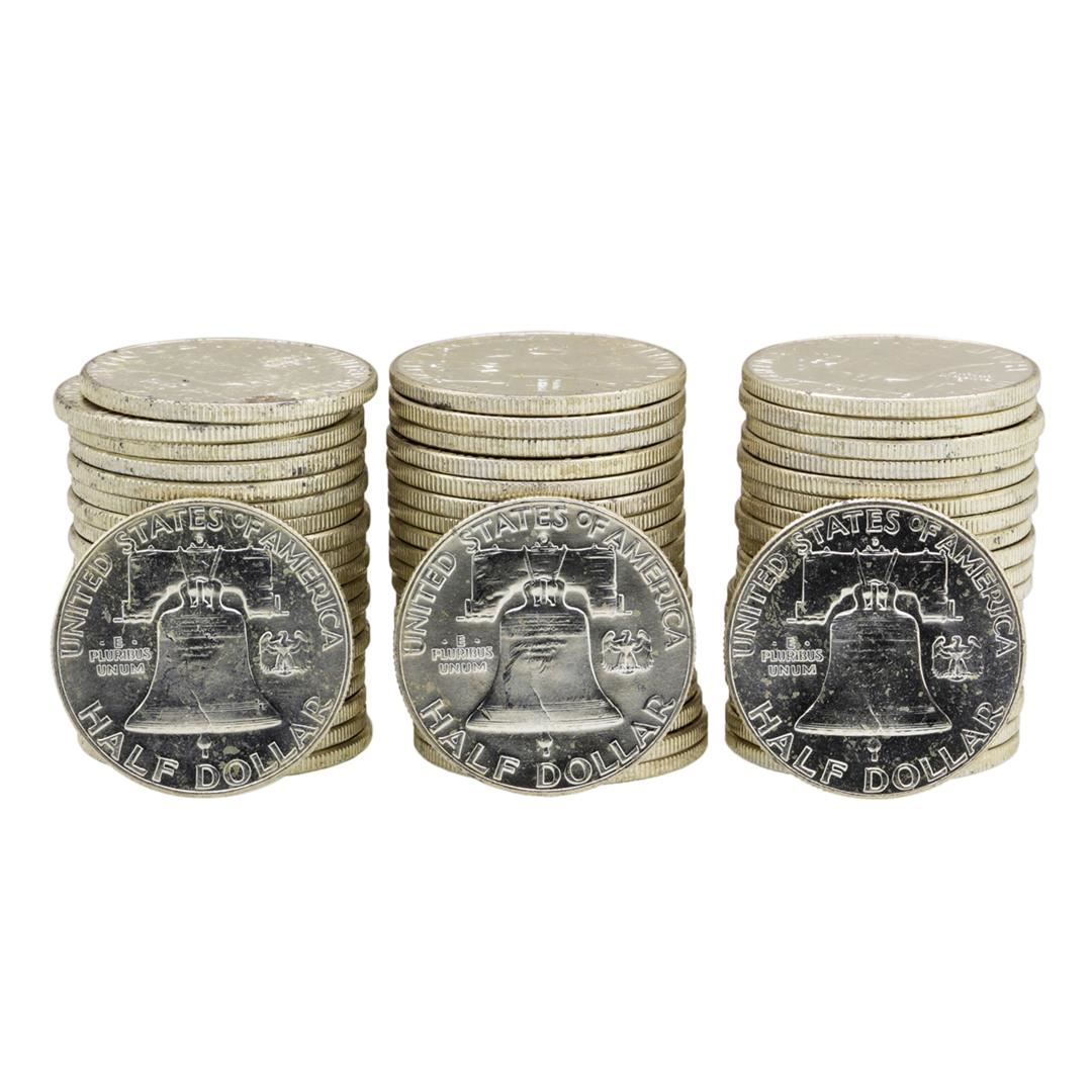 Lot of (3) Rolls of (20) 1963-D Brilliant Uncirculated Franklin Half Dollars