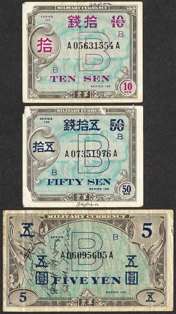 Lot of (3) Series 100 Japanese Military Fractional Currency Notes