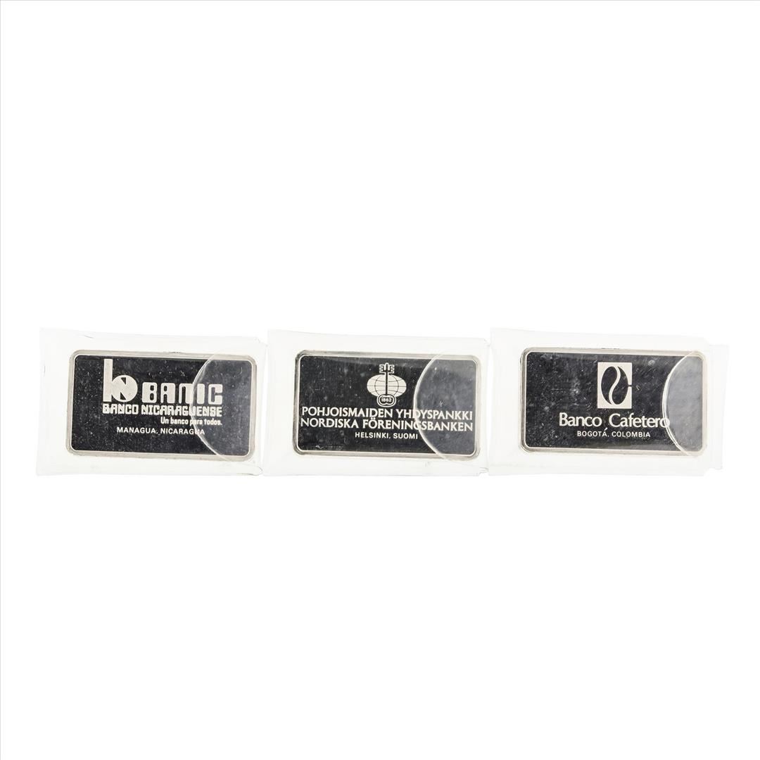 Lot of (3) Vintage Franklin Mint World Bank Silver Bars. Each Bar is 1000 grains or Sterling Silver which is approximately 2 troy ounces of silver.