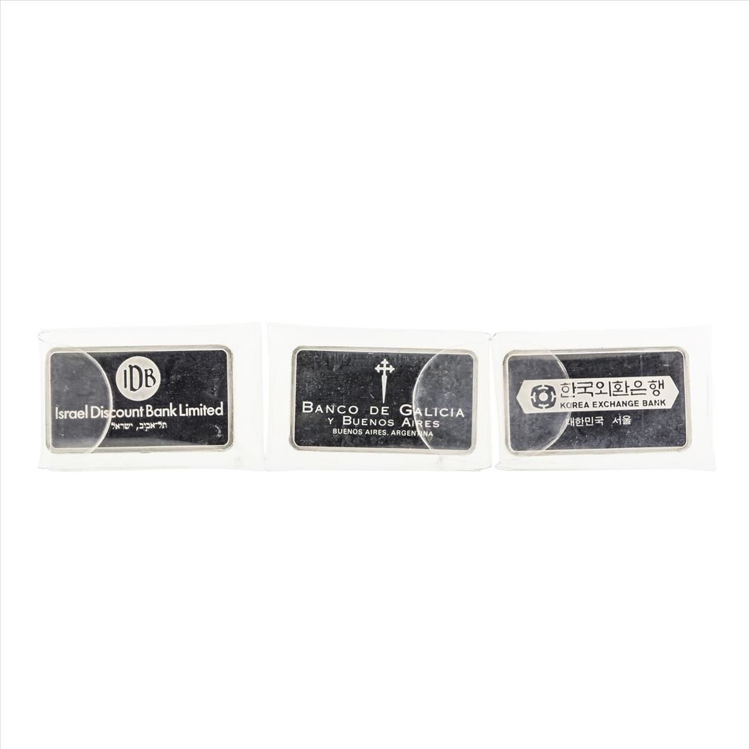 Lot of (3) Vintage Franklin Mint World Bank Silver Bars. Each Bar is 1000 grains or Sterling Silver which is approximately 2 troy ounces of silver.