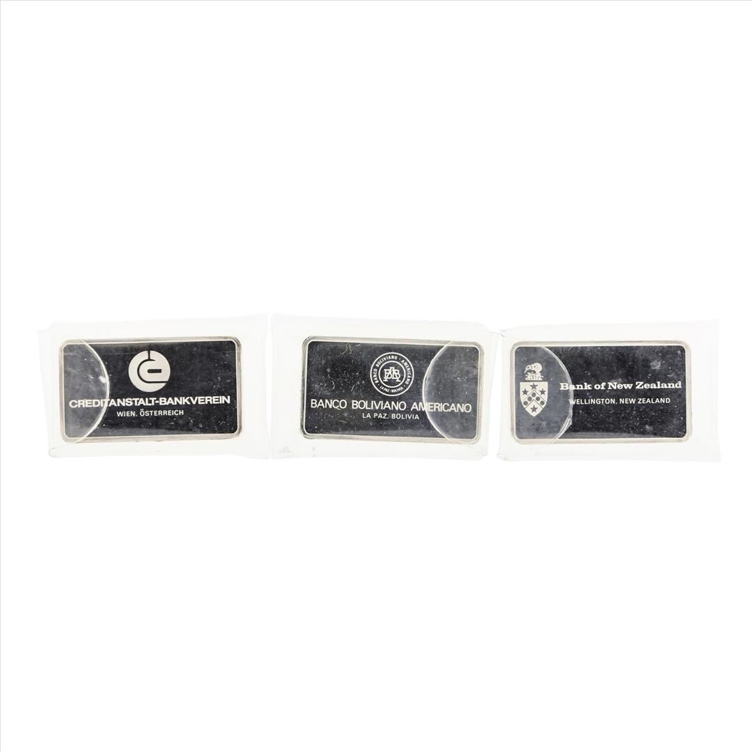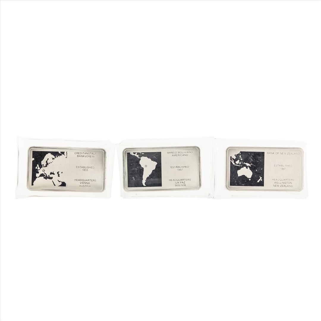 Lot of (3) Vintage Franklin Mint World Bank Silver Bars. Each Bar is 1000 grains or Sterling Silver which is approximately 2 troy ounces of silver.