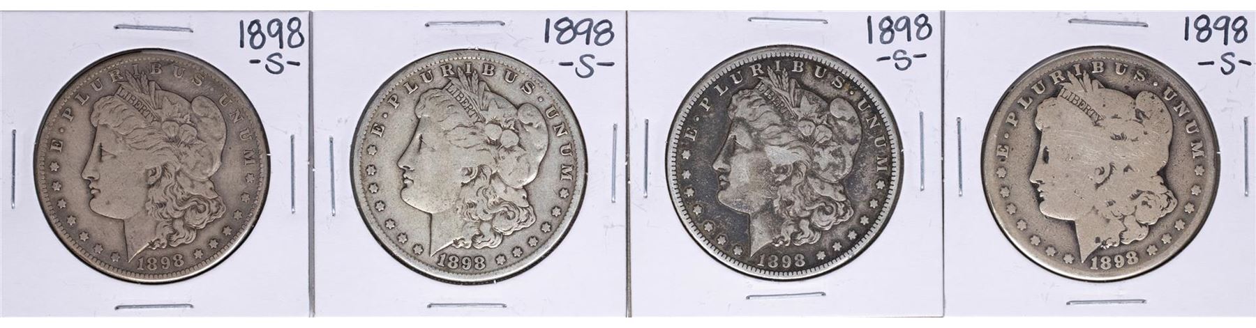 One Lot of (4) 1898-S $1 Morgan Silver Dollar Coins.