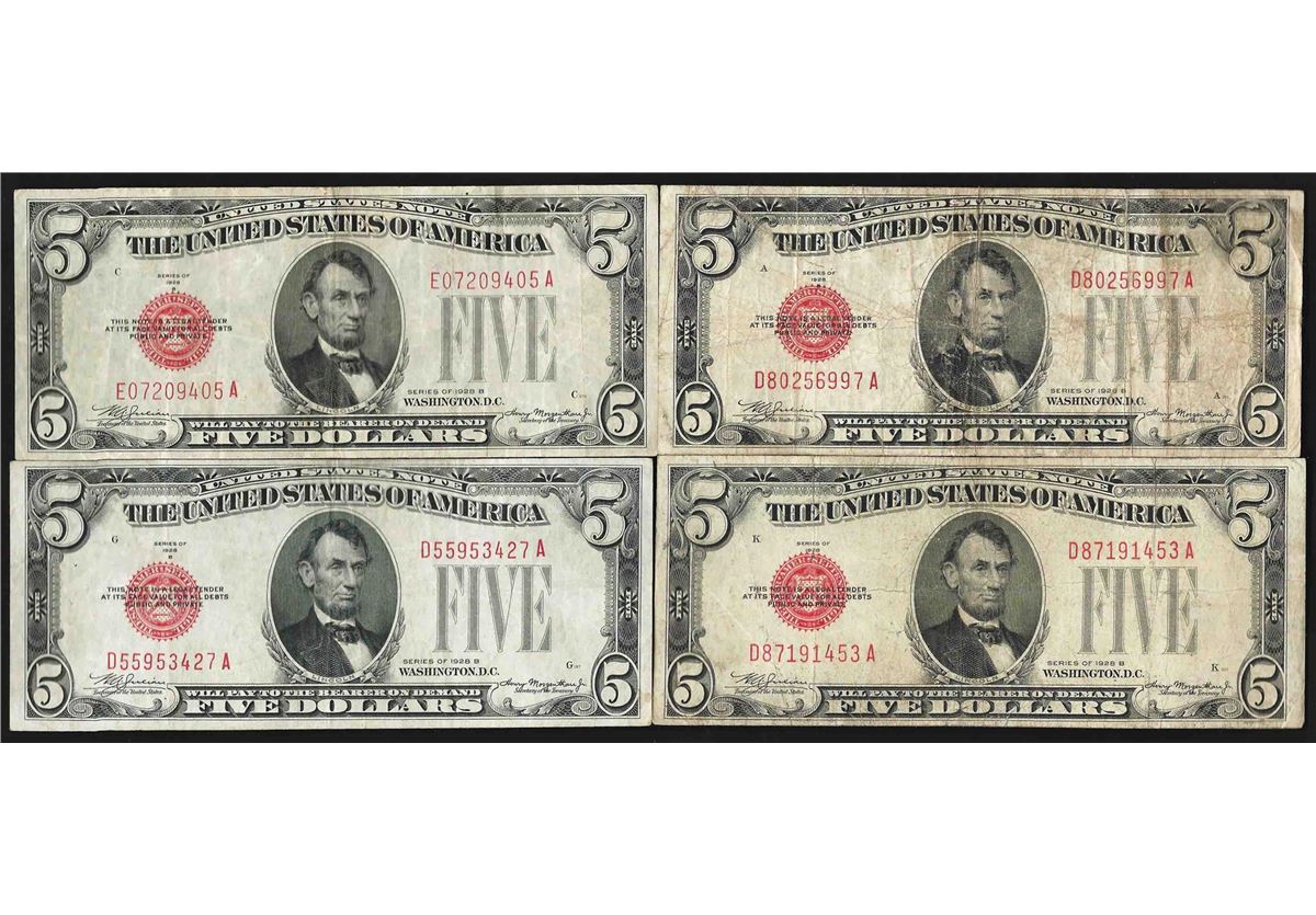 One Lot of (4) 1928B $5 Legal Tender Notes.