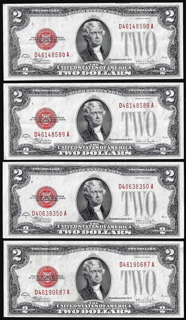 One Lot of (4) 1928F $2 Legal Tender Notes.