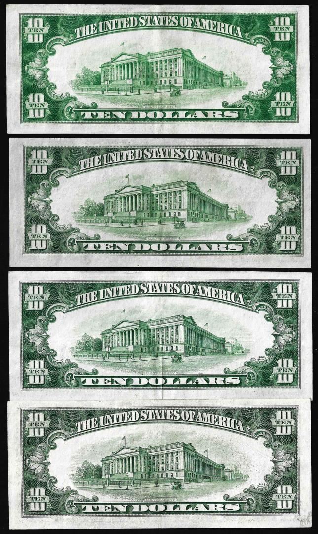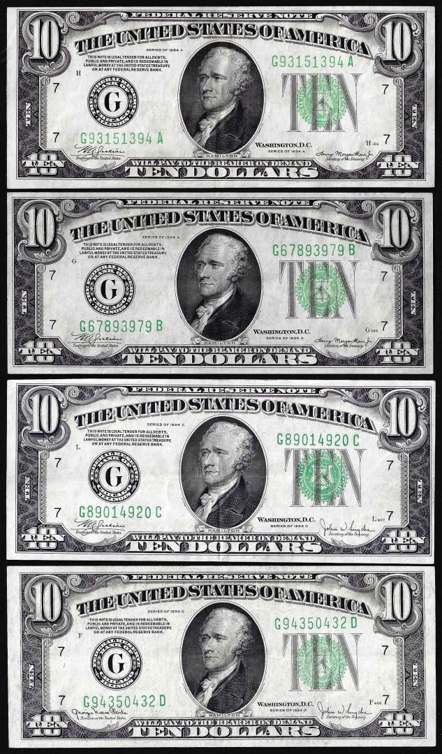 Lot of (4) 1934 $10 Federal Reserve Notes Chicago