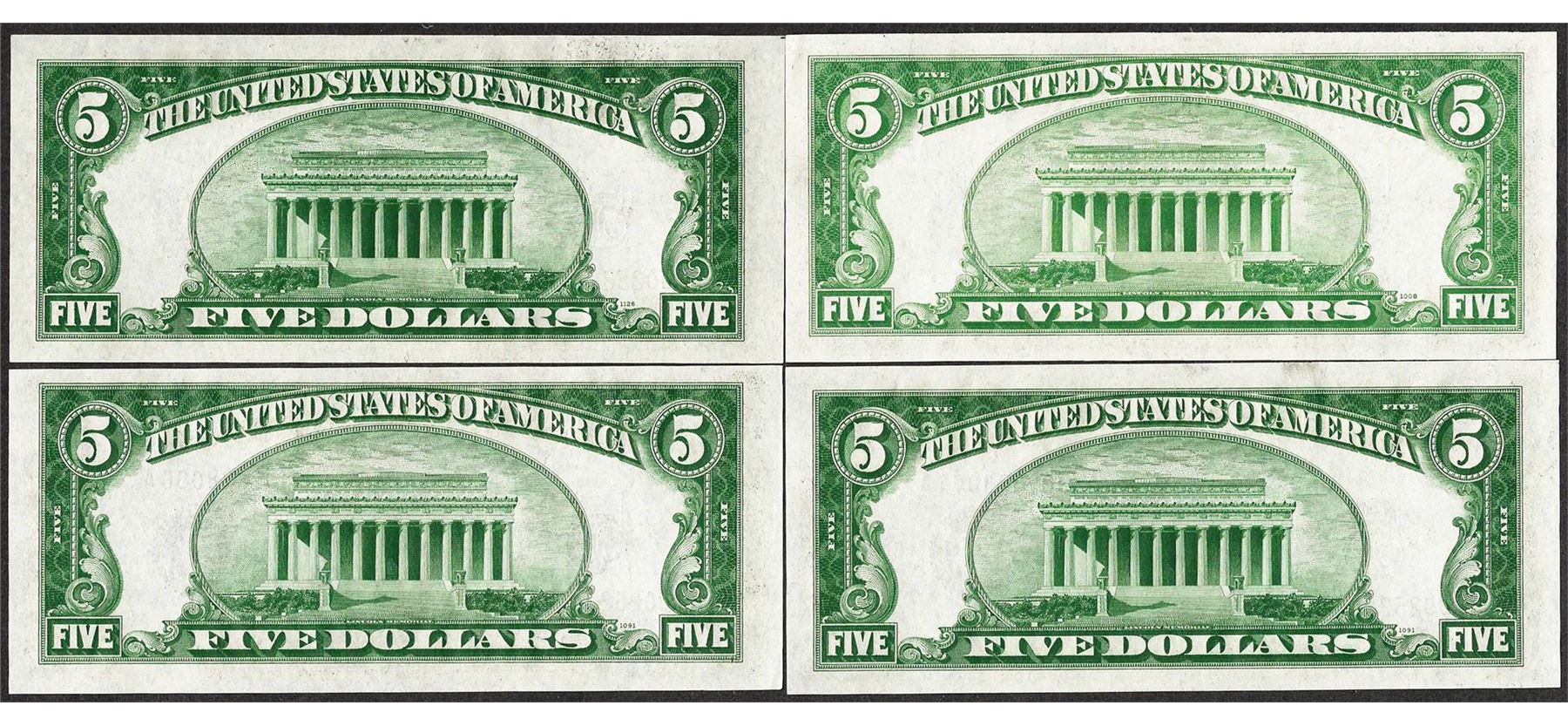 One Lot of (4) 1934A $5 Silver Certificate Notes.
