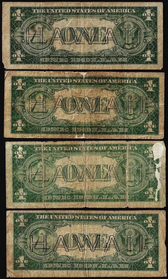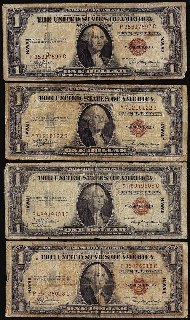 One Lot of (4) 1935A $1 Hawaii WWII Emergency Issue Silver Certificate Notes.
