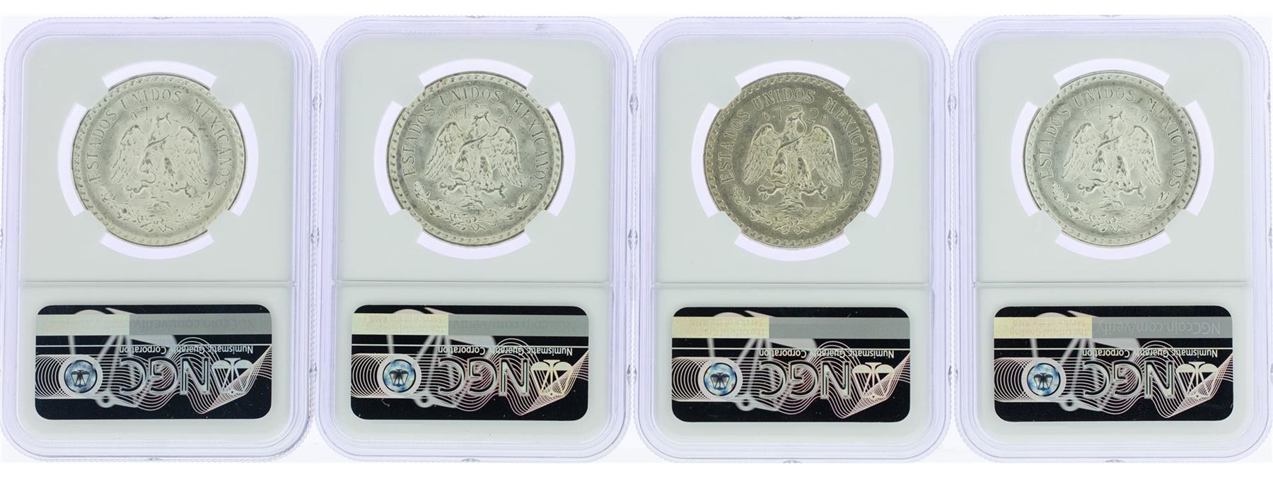 One Lot of (4) 1943M Mexico Peso Silver Coins NGC MS64. NGC Certified.
