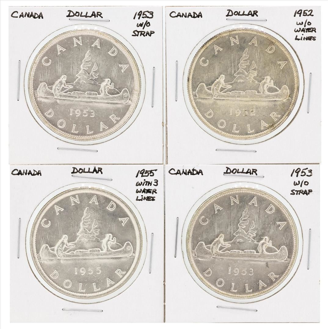 One Lot of (4) 1952-1955 Canada $1 Silver Coins.