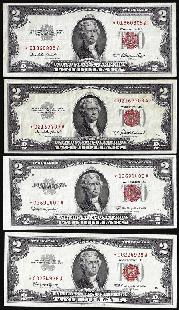 One Lot of (4) 1953/1963 $2 Legal Tender STAR Notes.