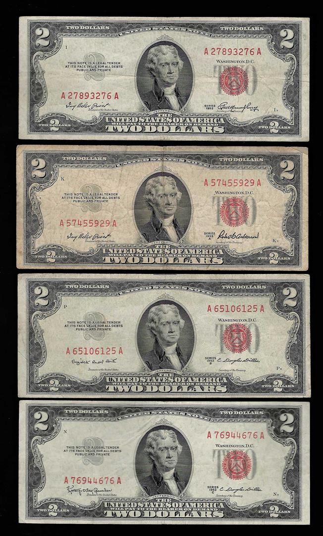One Lot of (4) 1953/A/B/C $2 Legal Tender Notes.