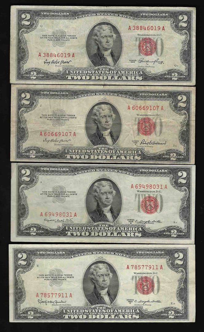 Lot of (4) 1953/A/B/C $2 Legal Tender Notes