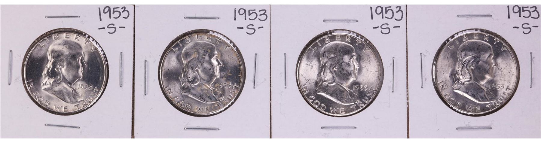 One Lot of (4) 1953-S Franklin Half Dollar Coins.