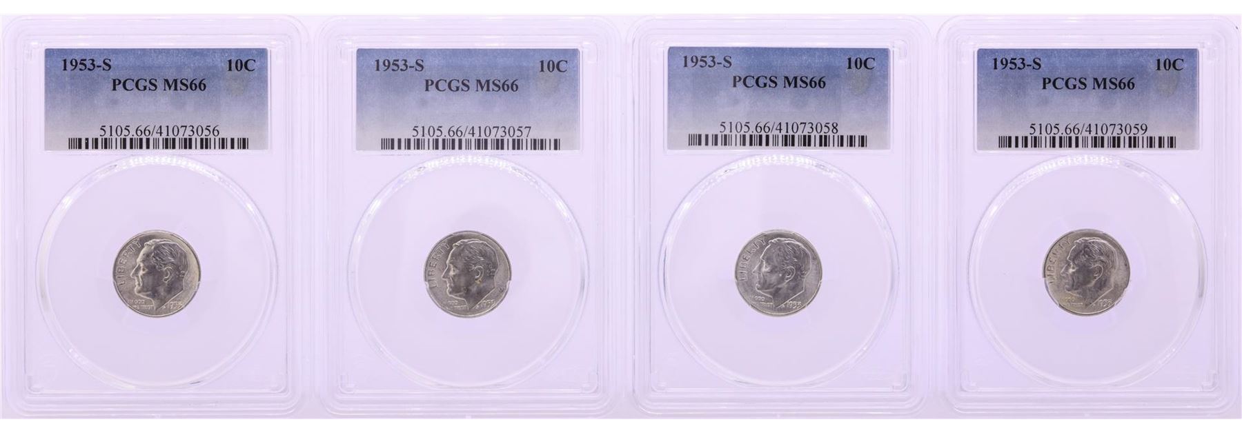 One Lot of (4) 1953-S Roosevelt Dime Coins PCGS MS66. PCGS Graded.