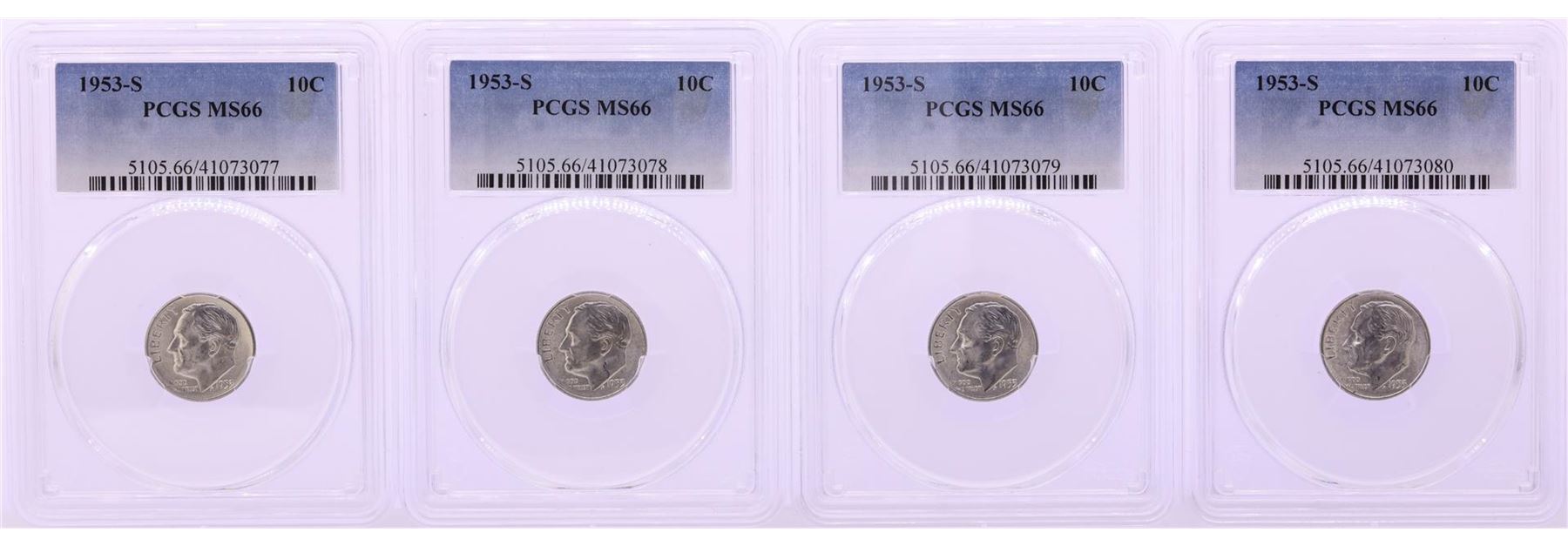 One Lot of (4) 1953-S Roosevelt Dime Coins PCGS MS66. PCGS Graded.