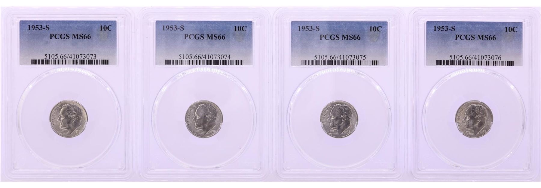 One Lot of (4) 1953-S Roosevelt Dime Coins PCGS MS66. PCGS Graded.