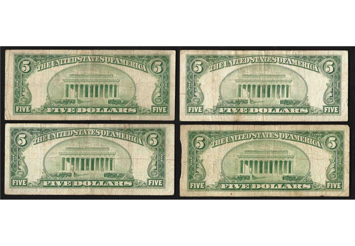 One Lot of (4) 1953A $5 Silver Certificate Notes.