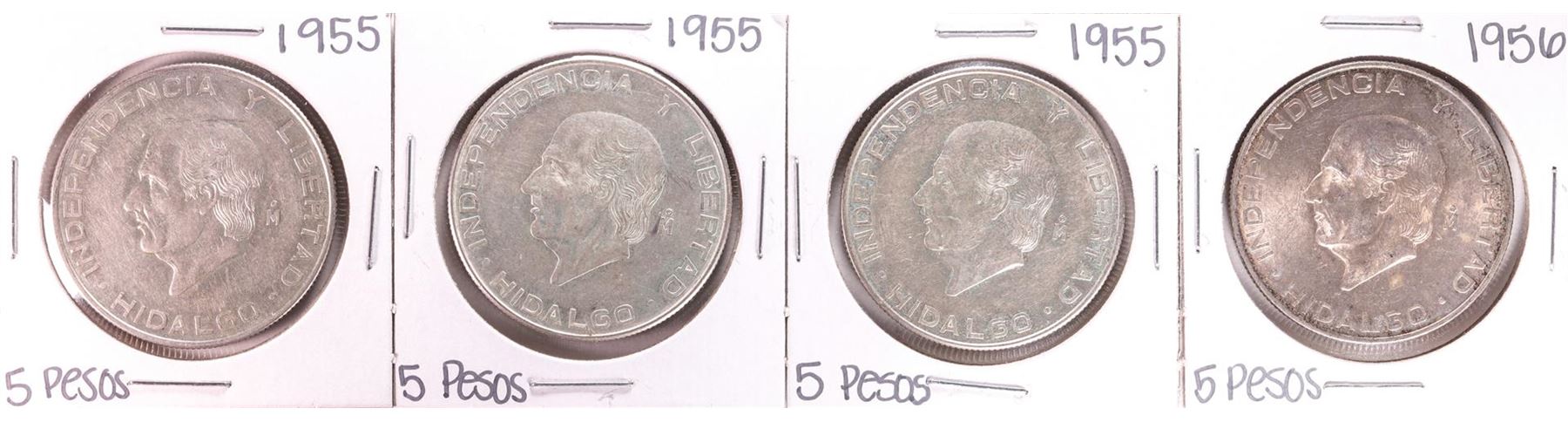 Lot of (4) 1955 Mexico Hidalgo Cinco Pesos Silver Coins