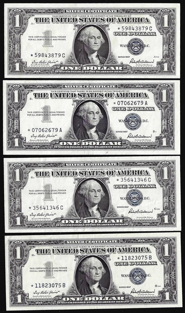 One Lot of (4) 1957 $1 Silver Certificate Star Notes.