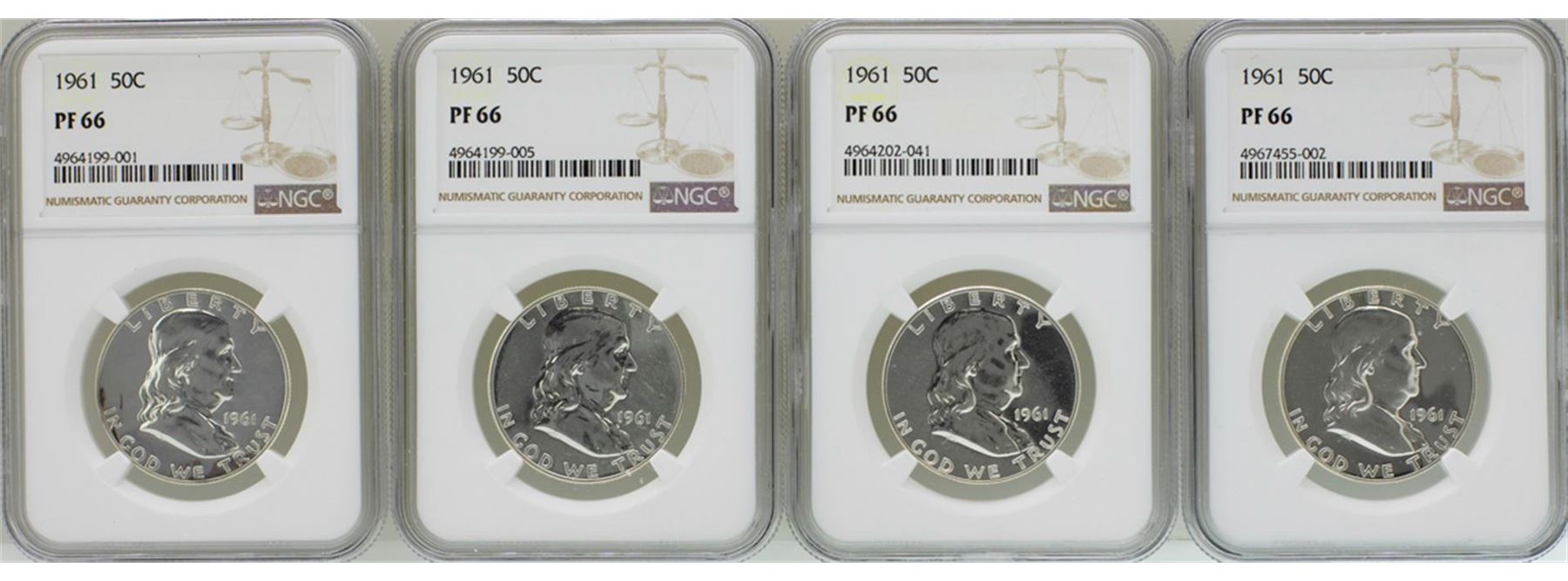 Lot of (4) 1961 Proof Franklin Half Dollar Coins NGC PF66