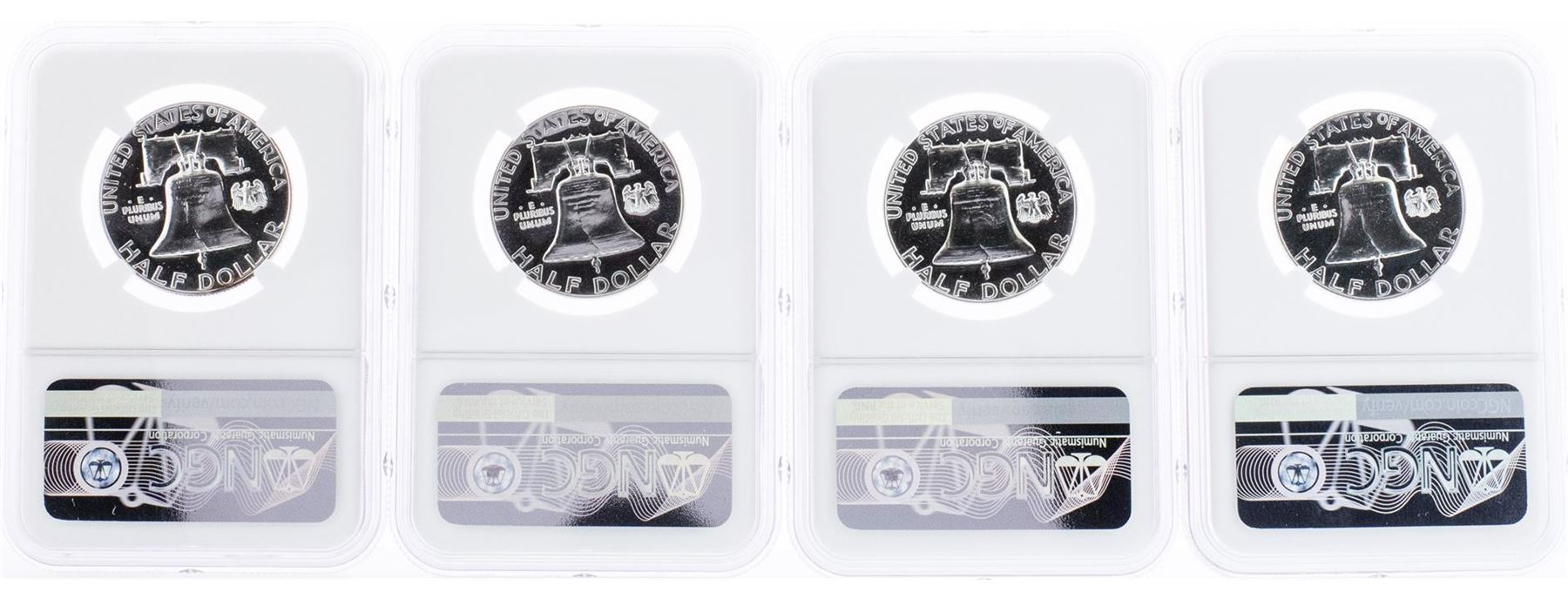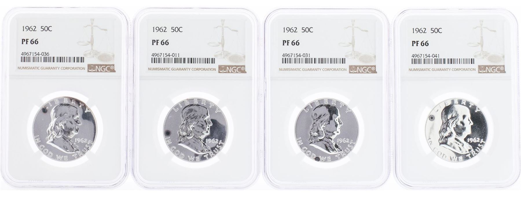 One Lot of (4) 1962 Proof Franklin Half Dollar Coins NGC PF66. NGC Certified.