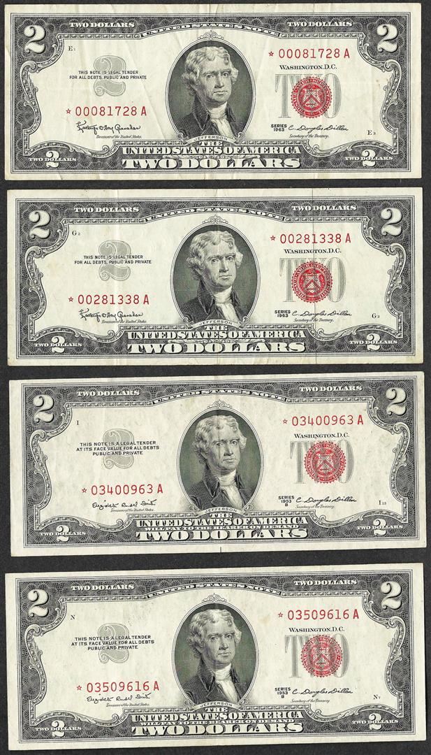 One Lot of (4) 1963 $2 Legal Tender STAR Notes.