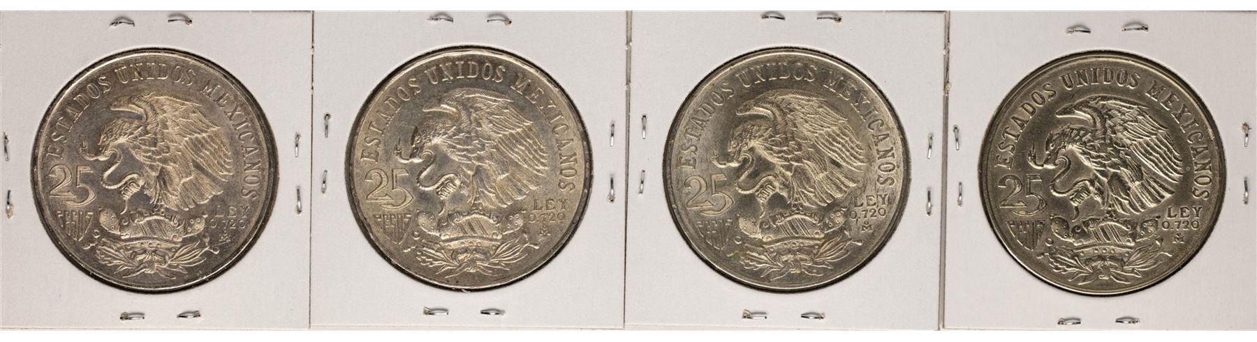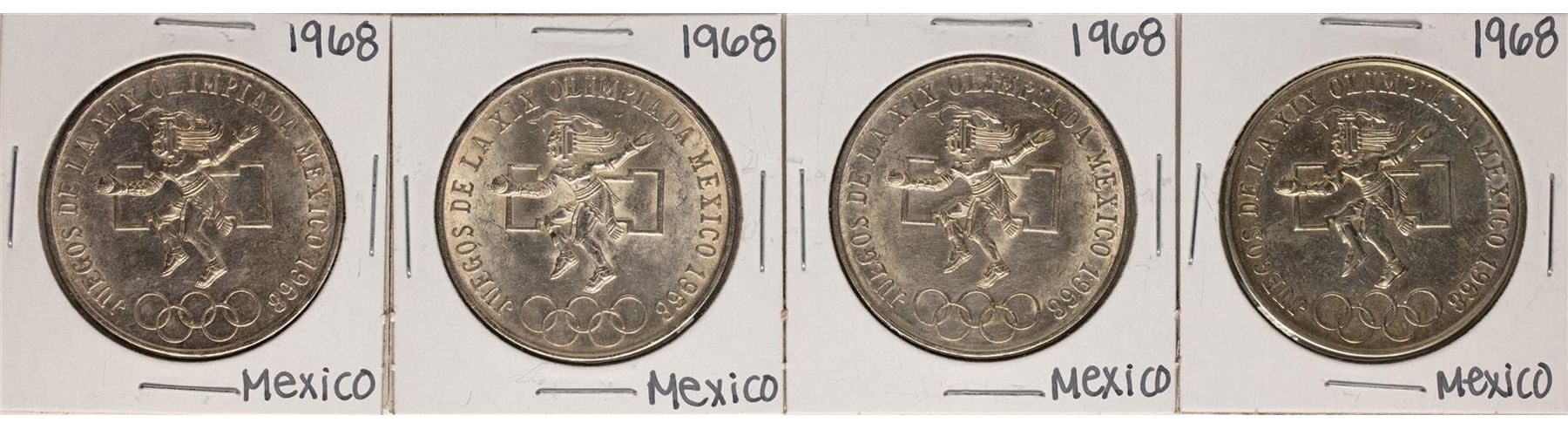 Lot of (4) 1968 Mexico 25 Pesos Olympics Commemorative Coins