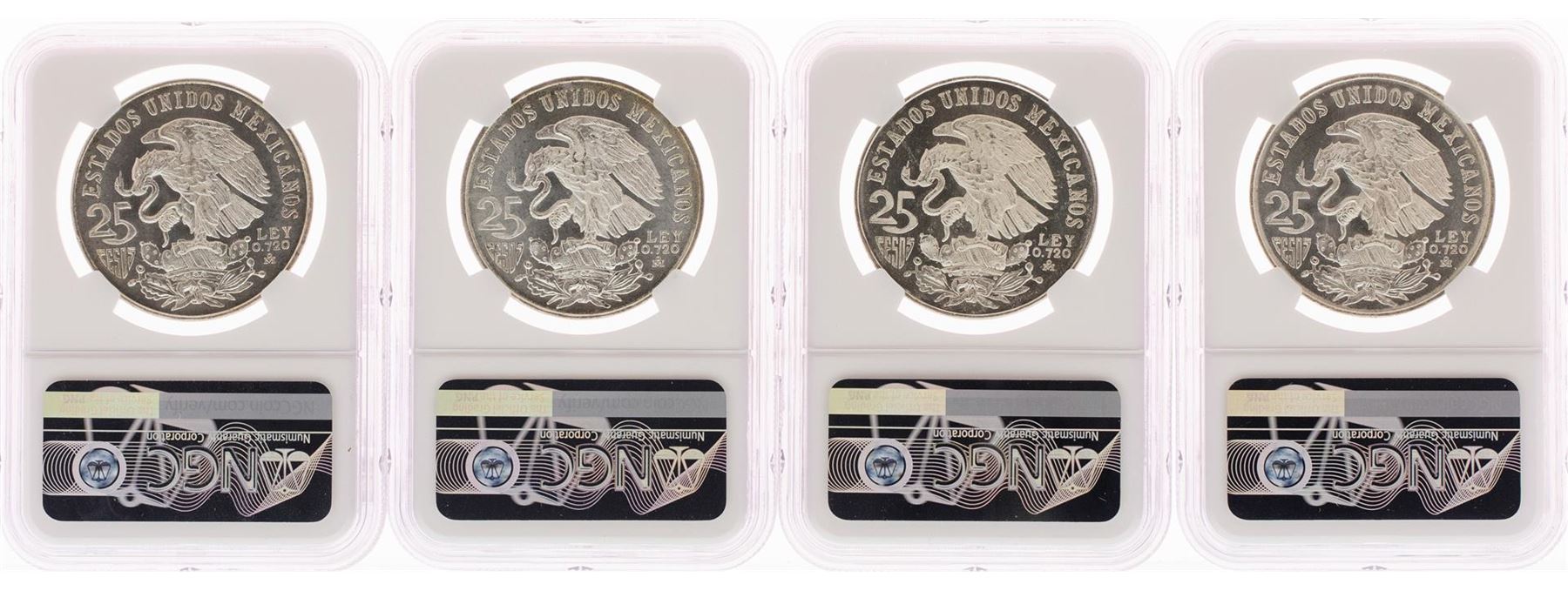 Lot of (4) 1968Mo Mexico 25 Pesos Olympics Commemorative Silver Coins NGC MS66