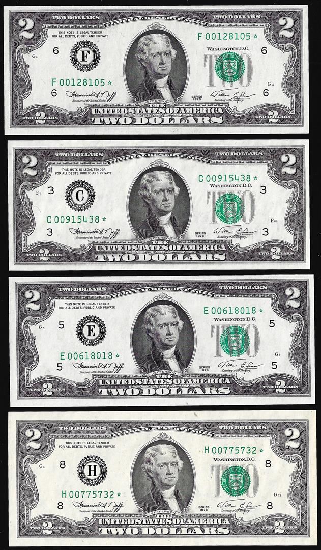 One Lot of (4) 1976 $2 Federal Reserve Star Notes.