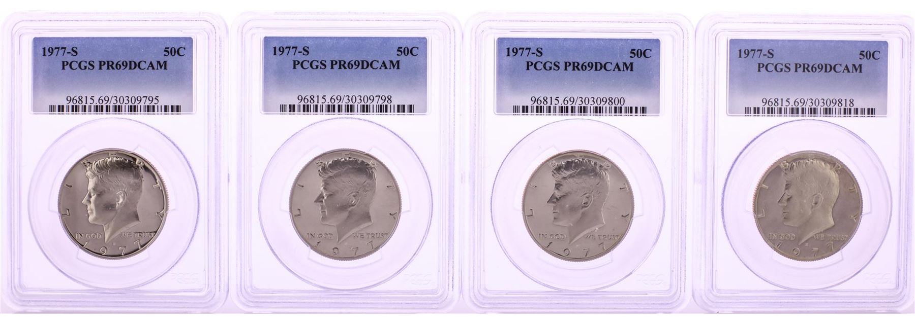 Lot of (4) 1977-S Proof Kennedy Half Dollar Coins PCGS PR69DCAM