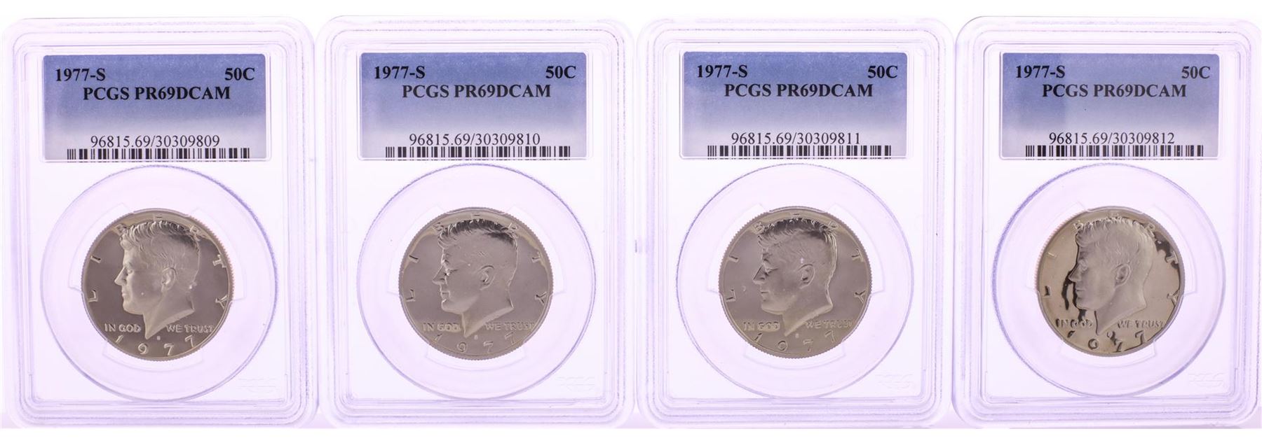Lot of (4) 1977-S Proof Kennedy Half Dollar Coins PCGS PR69DCAM