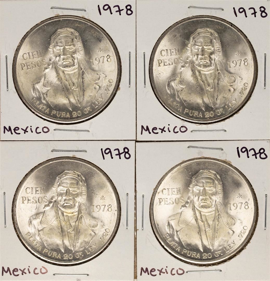 One Lot of (4) 1978 Mexico Cien Pesos Silver Coins.