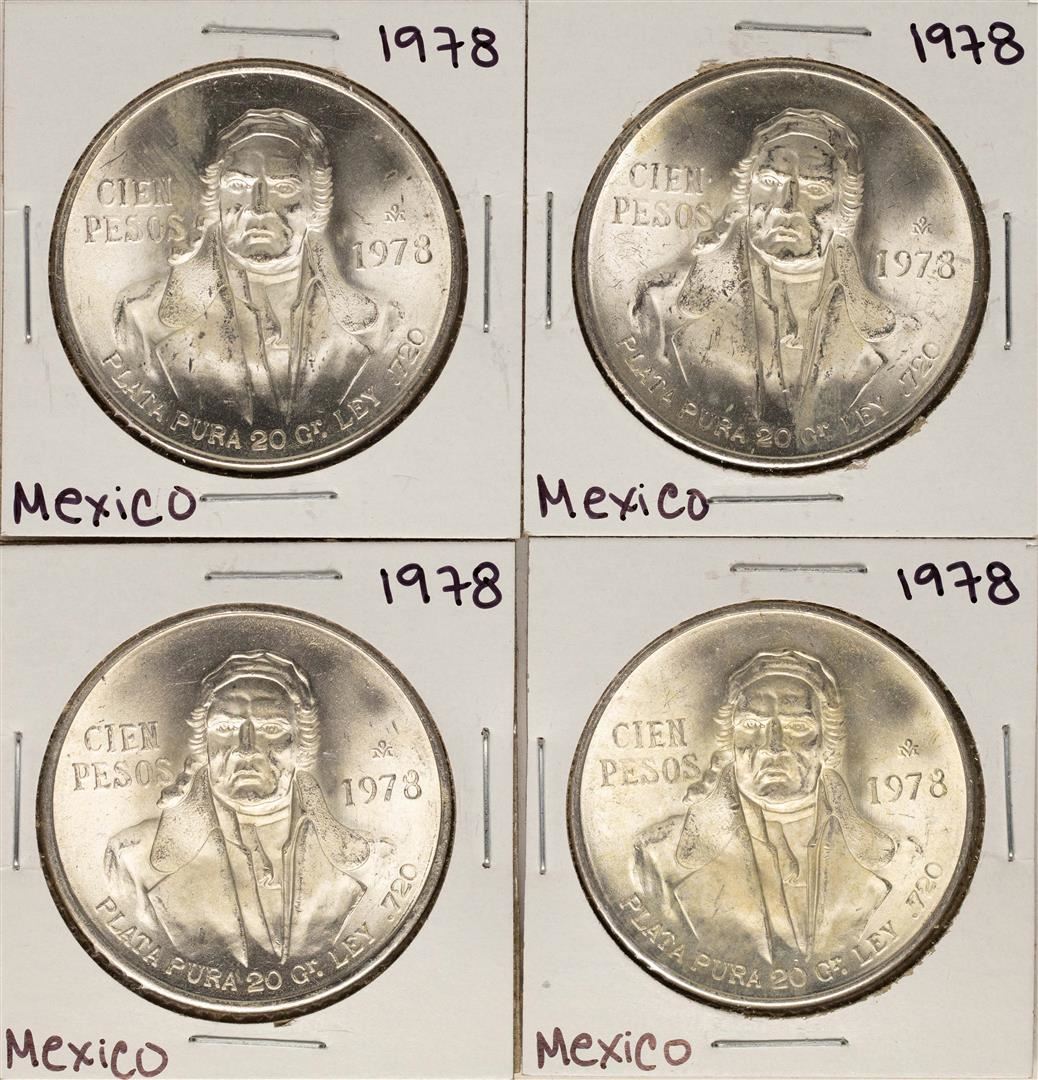One Lot of (4) 1978 Mexico Cien Pesos Silver Coins.