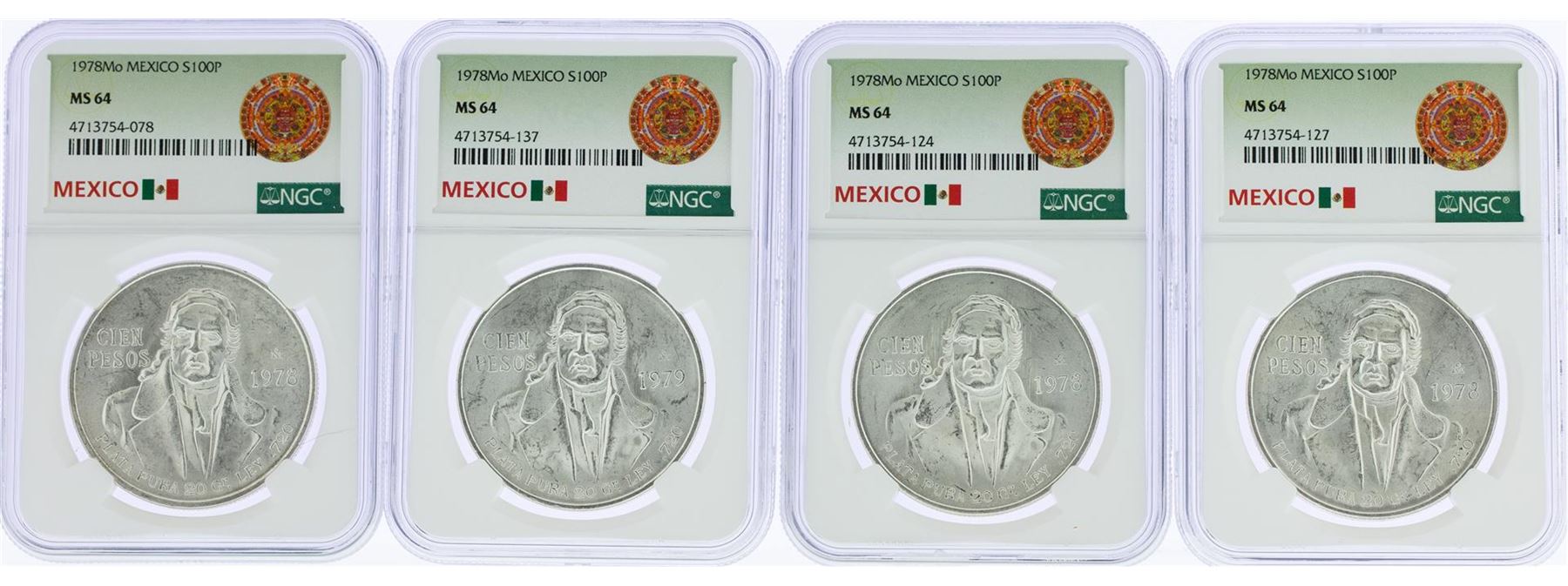 Lot of (4) 1978Mo Mexico 100 Pesos Silver Coins NGC MS64