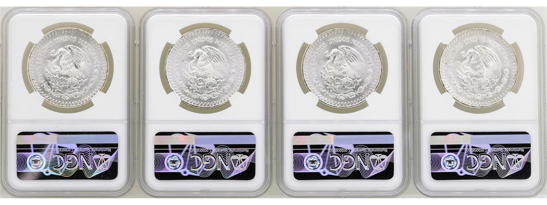 One Lot of (4) 1982Mo Mexico Libertad Onza Silver Coins NGC MS65. NGC Certified.