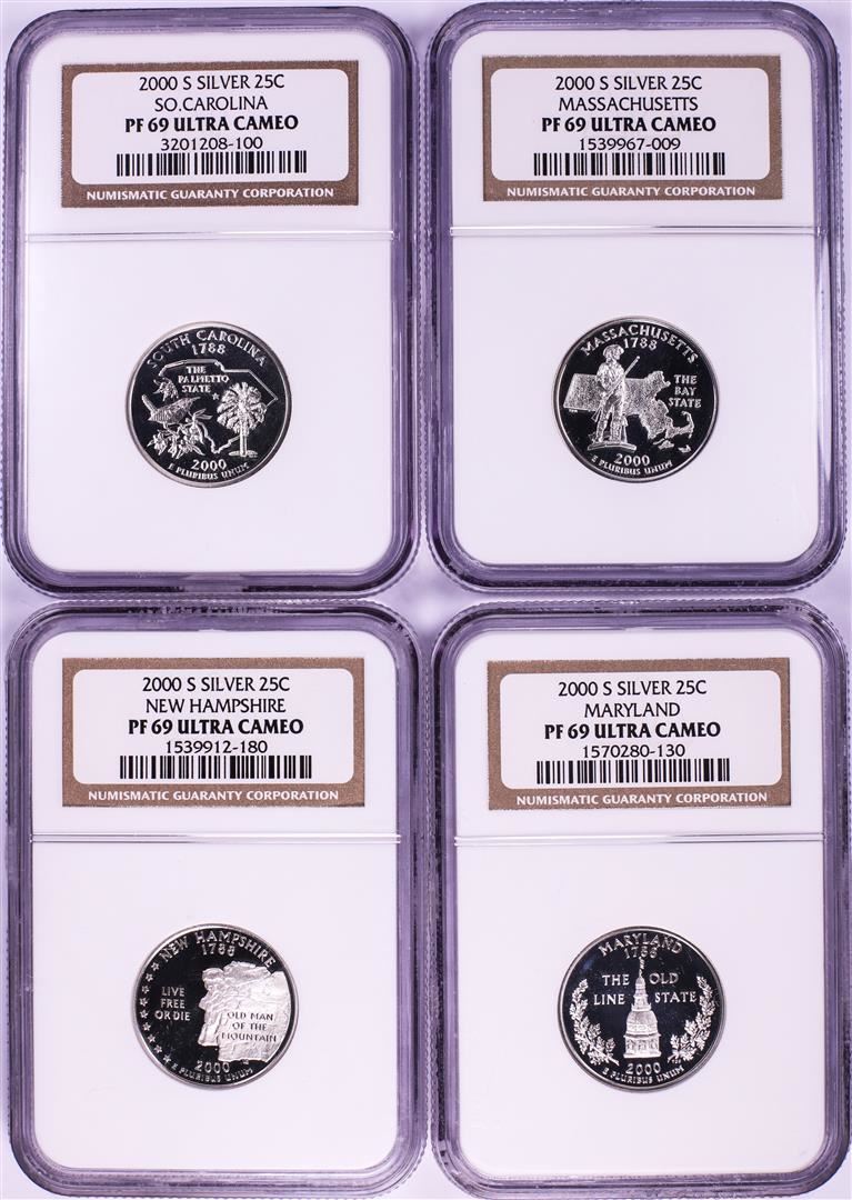 Lot of (4) 2000-S Proof Silver State Quarter Coins NGC PF69 Ultra Cameo