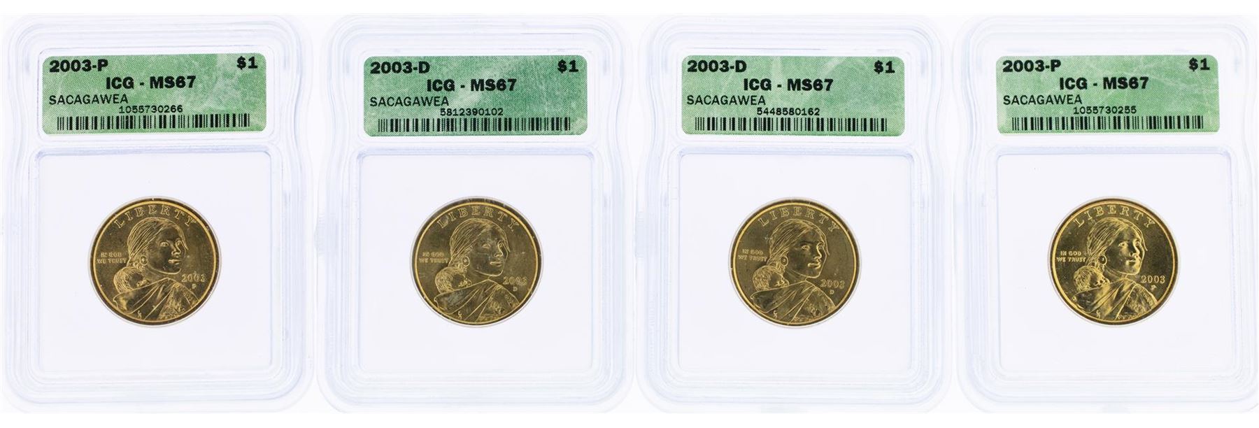 One Lot of (4) 2003 Sacagawea Dollar Coins ICG MS67. ICG Certified.