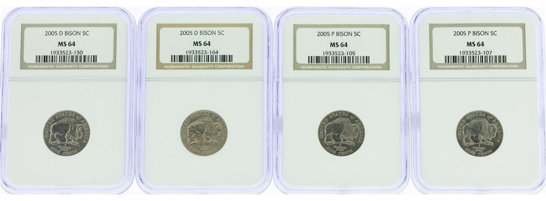 One Lot of (4) 2005 Bison Nickel Coins NGC MS64. NGC Certified.