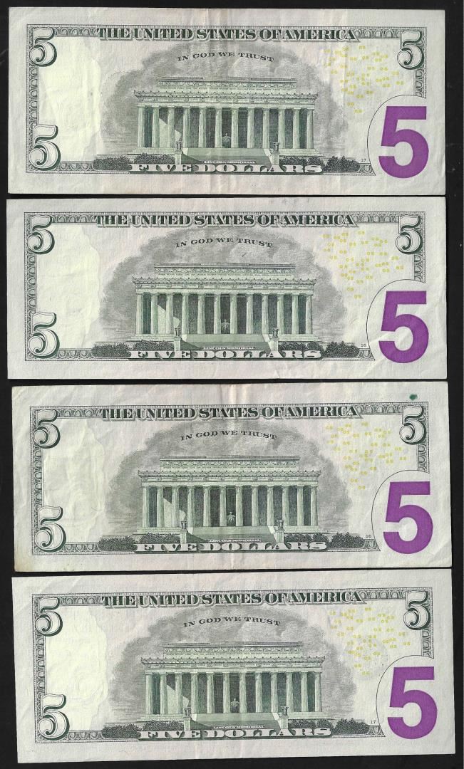 One Lot of (4) 2006 $5 Federal Reserve Star Notes.