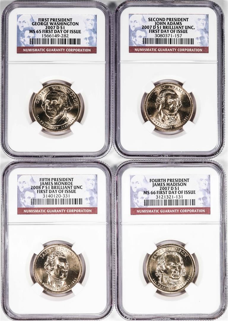 Lot of (4) 2007 & 2008 Presidential Dollar Coins NGC Certified
