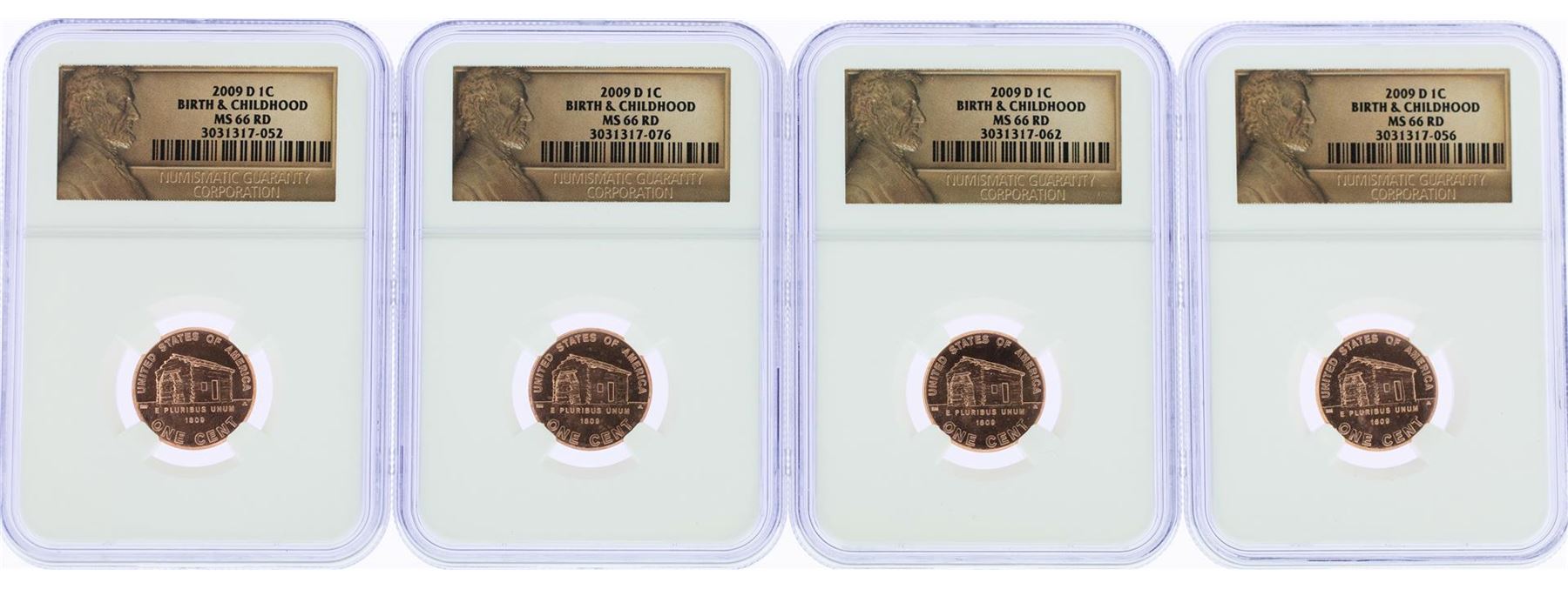 One Lot of (4) 2009-D Birth & Childhood Lincoln Cent Coins PCGS MS66RD. PCGS Graded.