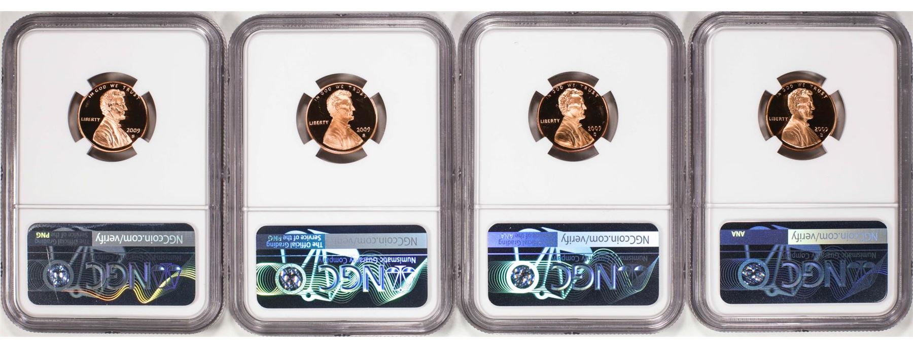 Lot of (4) 2009-S Bronze Proof Lincoln Cent Coins NGC PF69RD Ultra Cameo