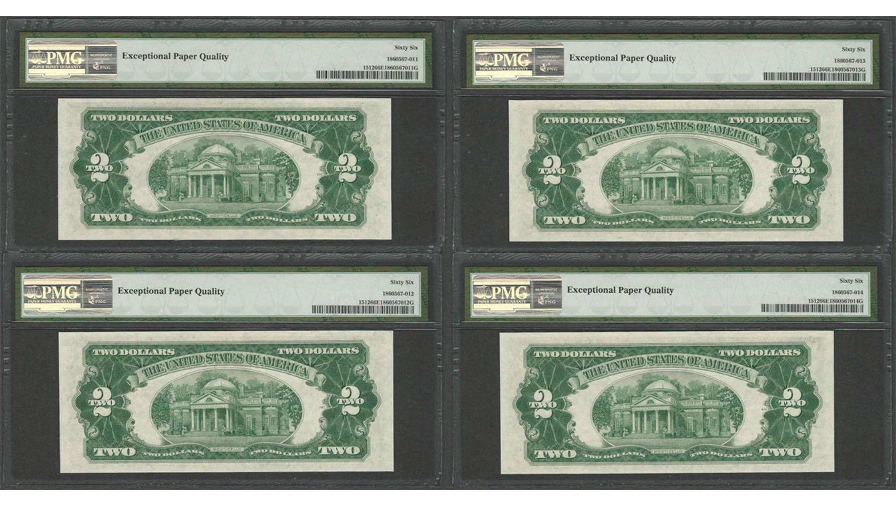 One Lot of (4) Consecutive 1953C $2 Legal Tender Notes Fr.1512 PMG Gem Uncirculated 66EPQ. PMG Certified.