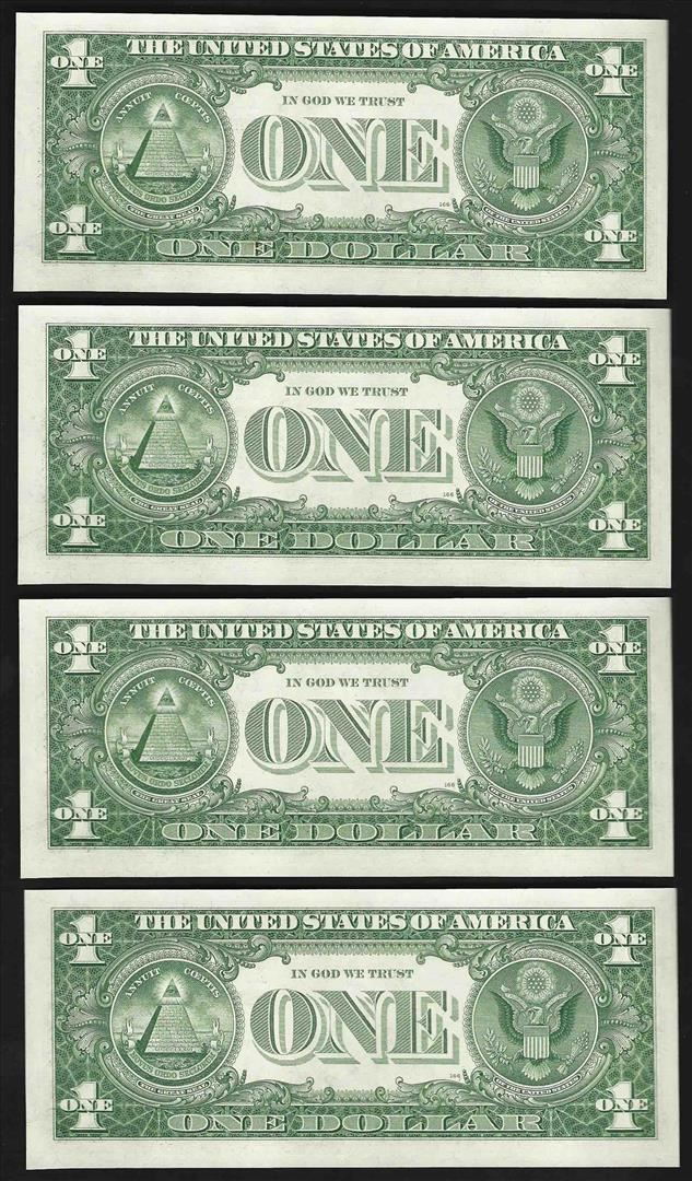 One Lot of (4) Consecutive 1957 $1 Silver Certificate Notes Uncirculated.