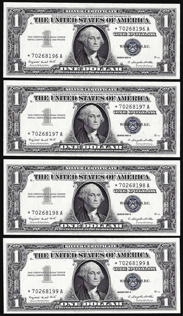 One Lot of (4) Consecutive Uncirculated 1957A $1 Silver Certificate Star Notes.