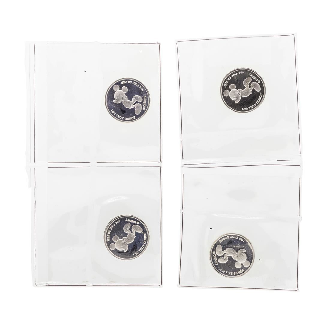 One Lot of (4) Disney Mickey Mouse 1/20 oz. .999 Fine Silver Coin Rounds.