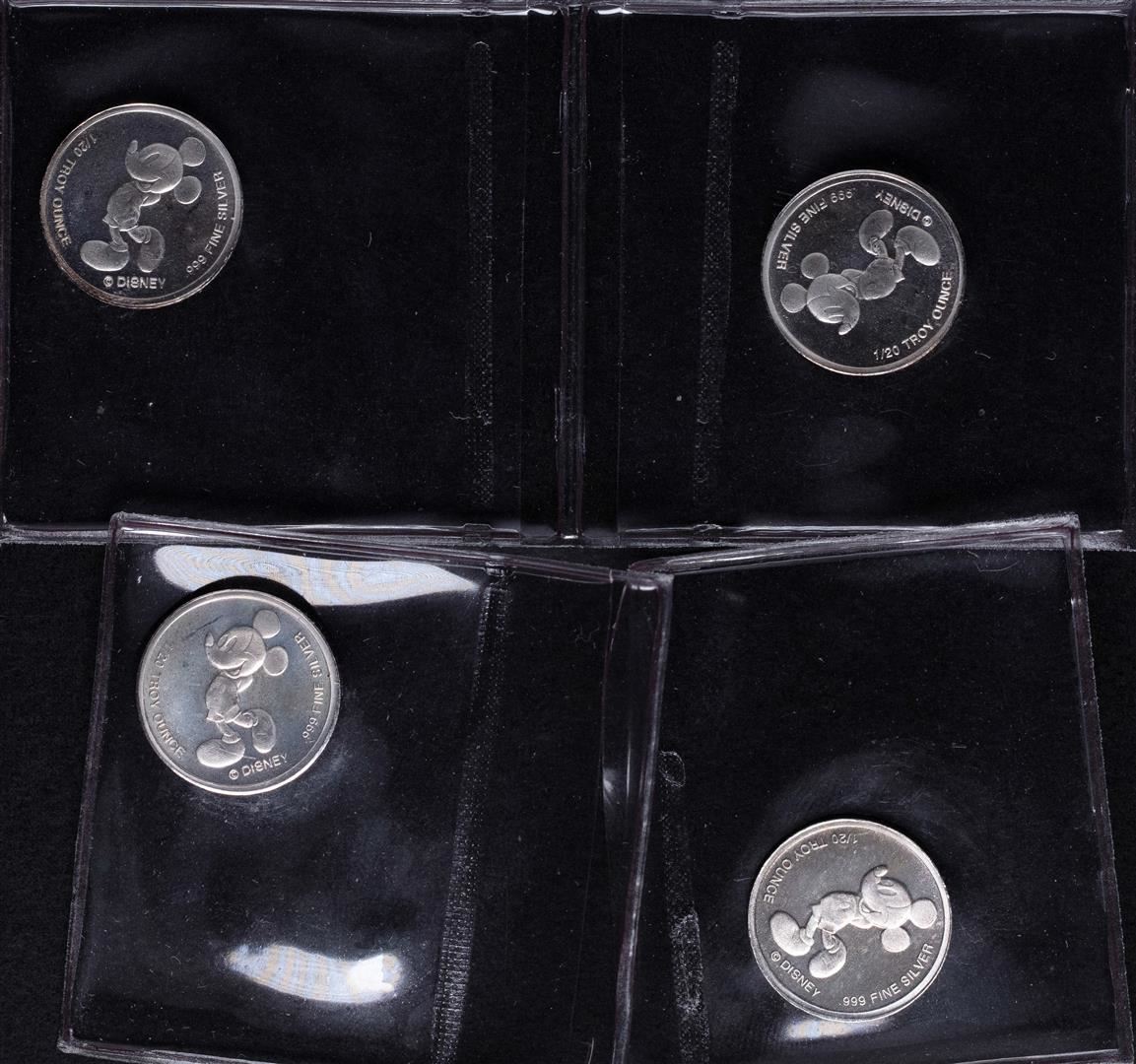 One Lot of (4) Disney Mickey Mouse 1/20 oz. .999 Fine Silver Coin Rounds.
