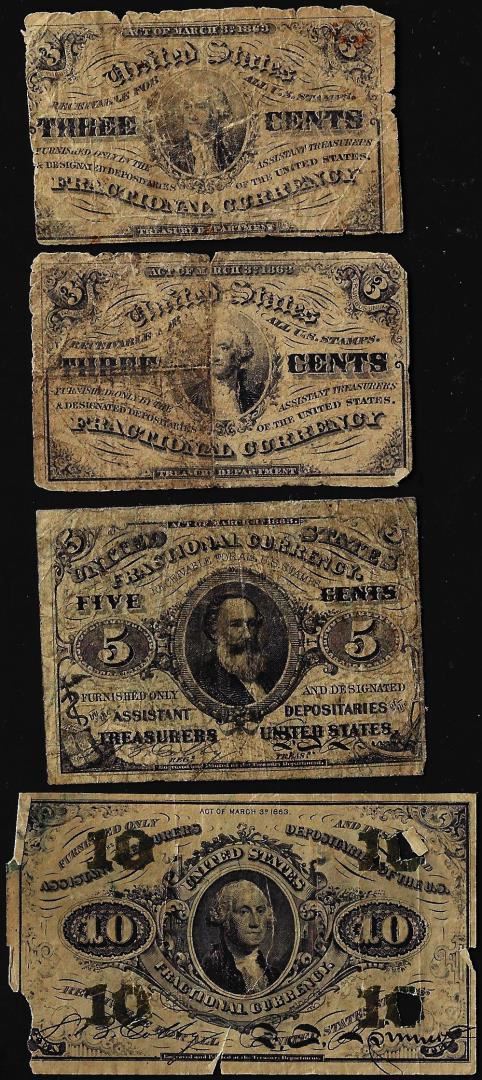 Lot of (4) March 3, 1863 Third Issue Fractional Currency Notes